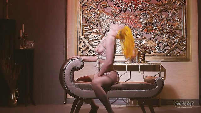 Description:The inked beauty with a sexy furry pussy returns...this time to make herself cum in the Mandarin lounge with a beautiful glass dildo. She starts off stripping out of her panties but leaving the rest of her sexy, breast revealing lingerie on and fingers herself in wild positions. Then she picks up a pretty glass dildo and rocks her body with an orgasm.