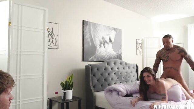 Description:Thalia has an issue. She has two guys she has been hooking up with for a while, but has to get rid of them since now she has a actual boyfriend. She decides on having them both come at the same time and give her a nice fucking. The only issue is midway through the fun her new boyfriend walks in? What is a girl to do? Invite to him to watch of course!