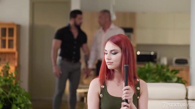 Description:Leya Desantis is a real beauty with her ivory-soft skin and her magnificent red hair. When Zack and Lorenzo arrive in her office, the three of them can now feel the heat and are ready to enjoy some DP pleasures.