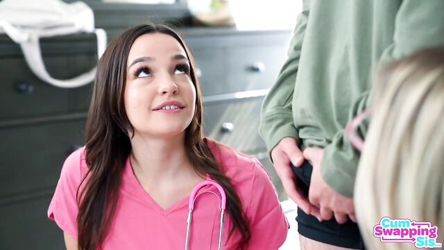 Description:Juan Loco is in medical school and his stepsister Rissa May Kassidy and her BFF Jill Kassidy want to know all about it. When Juan says there aren't a lot of girls so he's not getting much of a sex life, they offer to help him unload his cum. They want to play doctor and Juan agrees, but to his surprise the girls leave the room and come back dressed in scrubs.Even though Juan thought he'd be playing doctor, the girls are ready to go. They get on their knees and tell Juan they'll have to drain his balls of cum or else he'll need to have his prostrate milked. Still playing along, Juan lets them whip his cock out and suck him off. He doesn’t cum, though, which means his two hot and naughty nurses need to take things even further.Laying Juan on his back, Jill straddles him for some medicinal fucking in cowgirl before Rissa tries her hand in reverse cowgirl. Getting on her knees, Jill lets Juan fuck her in doggy while she feasts on Rissa's coochie. Juan finishes Rissa off as she lays on her back with Jill sucking her big naturals and then riding her friend's face. Finally Juan is ready to blow, which he does all over Jill's face and glasses so the girls can play with their well earned treat.