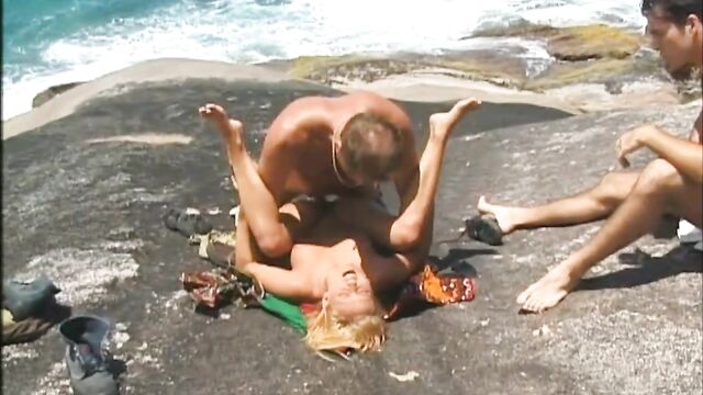 Description:Colette is a petite blonde and in this scene she shows two men the sea shore from the rocks. They pause and start to make out and soon she is in the middle of a hardcore threesome. After sucking both of the guys cocks she gets fucked and even double penetrated before taking their cum on her face.