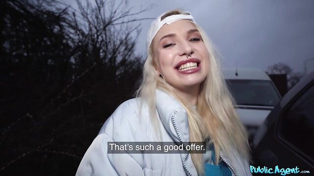 Description:I ordered some pizza the other night, which was delivered by hot blonde delivery girl Vera Jarw. I cheekily offered Vera a few euros to guess the size of my dick, and then I handed over a measuring tape! When she knelt down and saw how big it really was, the naughty minx devoured it in a sexy, deepthroat blowjob, which got her horny. Wanting to fuck, Vera stuck out her big curvy ass and took a doggystyle pounding from behind while I spanked her hard, and then she slobbered over my dick some more! Afterwards, the big-boobed slut bounced her trimmed pussy on my lap cowgirl-style before spreading her legs and inviting me to bang her in missionary, making her huge titties bounce up and down. When I was close to climax, I pulled out just in time to spunk a creamy load inside the Russian babe’s cum-hungry mouth!