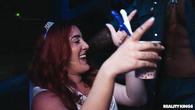 Description:Gia OhMy, Nia Bleu, Anna Chambers, and their besties have planned the ultimate Miami bachelorette party for their Bride-to-BFF, featuring a party bus! The ladies get wild, shaking their asses and spanking each other with big inflatable cocks, but things get even rowdier when Ace Bigs and Dickdealer Don climb on board. Dressed in police uniforms, the guys inform the women they're guilty of public indecency for being too sexy, then start a strip tease! The ladies all help themselves to a feel of the sexy strippers, and Anna sucks Ace till he cums on her face while Gia and Nia share Don's big dick, then share his cum on their tits.