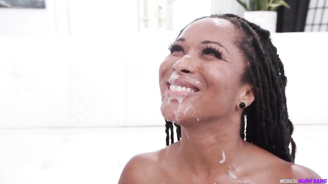Description:Cali Sweets just loves getting her protein first thing in the morning. And the best source of protein is semen so what better way to start than a blowjob. Although this morning her hubby Rion is not in the mood and wants more rest so she goes to the guest that is spending the night. That session is interrupted by the doorbell. Oh shit, this lady forgot her lover was heading over. So she runs downstairs and starts blowing him only to be interrupted by the pool man who wants his weekly bj. So now on to him. But he has a friend that interrupts them. Then the neighbors stop by to use the pool and immediately join in. Then the lover and guest want their the jobs finished. Drowning and gagging on a gaggle of man roots she looks up to see her hubby watching . Well of course he joins in and the blow bang continues. Soon she is getting all the protein she ever needed.