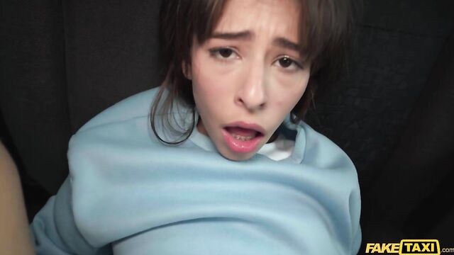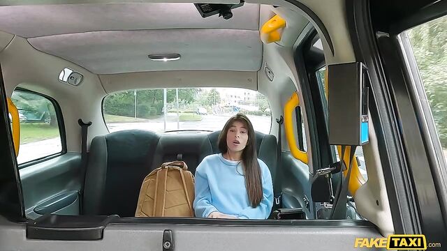Description:Today I picked up hot brunette Mells Blanco, who needed a lift back to college. When the sexy student tried to pay the fare, her card was declined, so she offered to suck me off instead! I found somewhere quiet to park the cab, and then I joined Mells in the backseat, where she deepthroated my rock-hard cock before taking a missionary-style fuck! Afterwards, I spooned the beautiful, all-natural Colombian, and then she straddled my lap and bounced her bald pussy on me in cowgirl. Still feeling horny, Mells got on her knees and invited me to bang her from behind in doggy position until I pulled out and spunked a creamy load all over her fine ass!