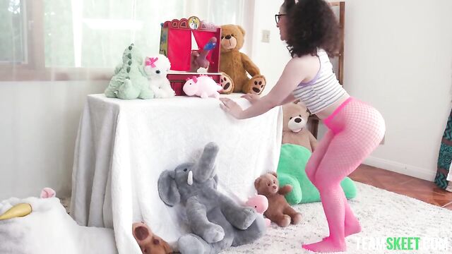 Description:The gorgeous Pixie Smalls is thrilled! She just got a note saying there’ll be a puppet show downstairs at her own house and she can’t wait. After jumping on the bed in delight, the curly-haired petite babe rushes downstairs to find a small stage arranged in the living room. Shocked, she sits on the floor to watch this impromptu childish play at her place. It’s about a flying pilot who’s afraid of flying. But… the pilot puppet is in fact a penis with a costume! The pilot asks the only member of the audience to give him some love and cheer him up, so she kisses the cock. Soon, the show's over and Danny reveals himself! He planned this all along to surprise the beautiful Pixie. Now, he wants a little token of gratitude for his show, so Pixie gets down to business and gives Danny’s dick as much love as she showed to the pilot puppet. She is so delighted about the play that she wouldn’t mind her puppetmaster stuffing her up with his massive meat.