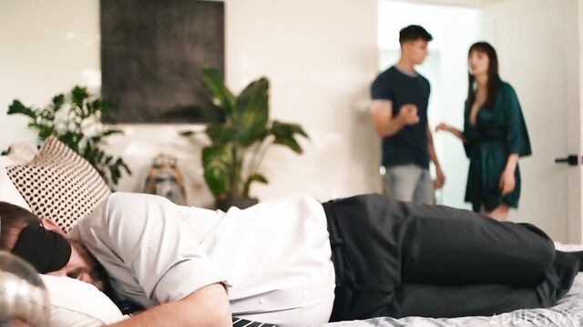 Description:Lexi Luna is happy to see that her workaholic husband, Daniel Shar, is home on time for once, thinking that they'll FINALLY be able to have sex. However, Daniel says he's too tired for sex and puts on a mask to take a nap.Annoyed and frustrated, Lexi decides that her stepson, Parker Ambrose, can give her all the sex her husband owes her. Parker is shocked but unable to resist temptation, and they have naughty sex in the same room -- even the same bed -- as the dozing husband!