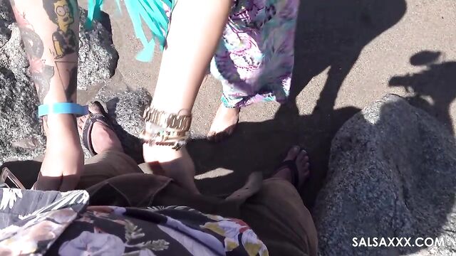 Description:In "Sex on the Beach" from Salsaxxx, Latina beauty Pequena Nery and Jean Pallett heat things up in the great outdoors. This sexy brunette with natural tits and a trimmed body starts with teasing and a sensual handjob, building up the excitement. The scene gets more intense when Pequena gives a passionate POV blowjob, showing off her amazing skills. With the ocean waves in the background, the couple moves into hardcore action, taking full advantage of the public setting. The chemistry between them leads to a powerful cumshot that completes this steamy outdoor adventure. Fans of public and outdoor scenes will love this beachside experience!