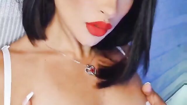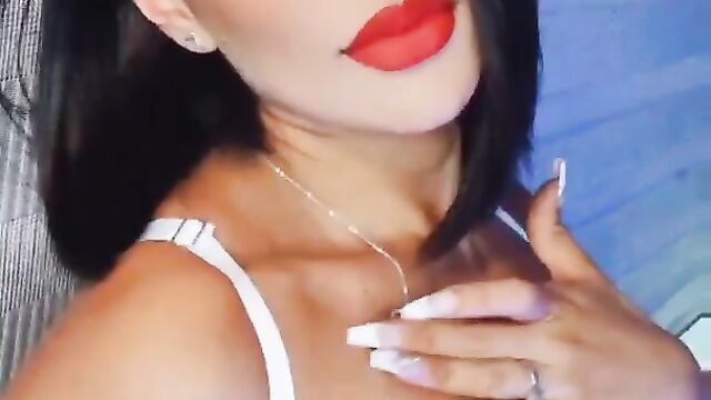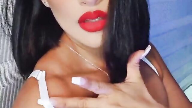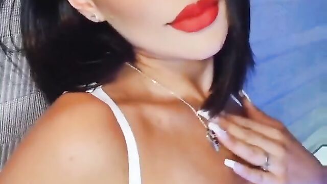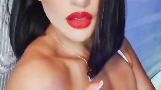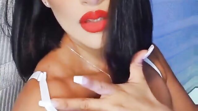 Brunette red lips teasing telegram soft