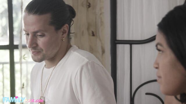 Stepbrother scene with luring Jay Romero and Maya Farrell from FAMILYxxx