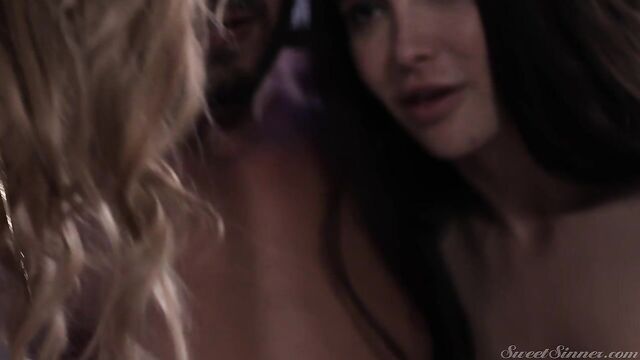 Description:Aiden has always been conventional sexually but one night she throws caution to the wind and makes a move on college girl, Jane inviting her husband Quinton to indulge in a threesome. Turned on to see his wife making out with another woman Quinton's cock instantly gets hard and he bangs both of them senseless before he releases a huge load with the help of Aiden onto Jane's milky stomach.
