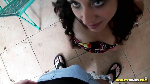 Description:I was driving around looking for a movie theater when a slim hottie caught my eye. She was walking down the street by herself and her body language indicated that she was looking for an address or someone. I watched her sexy ass walk for a bit before making my approach. I eventually pulled up next to her and after the pleasantries, I asked her if she wanted to hang out. She was trying to find a place to where she could get a drink and wait until her cousin got out of work so my timing was perfect. During the car ride, I persuaded Delilah to go back to my place and give me a blow job. After she masterfully slobbed on my knob, I fucked her relentlessly and then plastered her pretty face with an unbelievable amount of jizz.