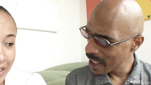 Description:Lucy Rayne has a pretty, dark skinned pussy that is about to get destroyed by big black cock. Black guys love her for that thick ass booty, and this guy makes sure to grab it, slap it and slam his dick in deep!
