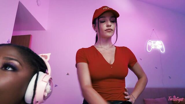 Description:Gamer Hazel Grace has no time to spare for her boyfriend when she's playing her game, and she can't even look away from the screen long enough to pay pizza delivery girl Rissa May. Instead of getting mad, Rissa decides to get some, and starts massaging the gamer's shoulders, then pulls out her big tits and rubs them against Hazel's face. Rissa is soon fingering Hazel's pussy, but when her BF comes in, she ducks under the desk to covertly lick Hazel! As soon as the dude leaves, Hazel is all in on getting a taste of the sexy pizza girl. The babes scissor, and Hazel fucks Rissa with a toy, then they 69. Rissa gets laid and gets paid!