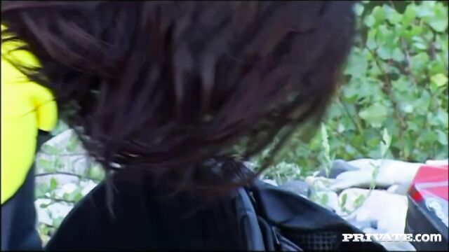 Description:A guy who is sneaking onto some land is caught by Cinthya Lavigne who was out there masturbating. When she has him in her hands, she pulls his shorts down and starts sucking his dick. She lays on her back and spreads her legs while he moves in and fucks her. Anal sex and a cumshot come last.