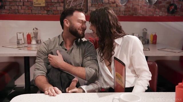 Description:Seth Gamble is having a date with a cute college girl, Liz Jordan, in a diner. He gets embarrassed when the waitress thinks he's Liz's parent, but Liz cheekily assures him that he's still young where it counts...