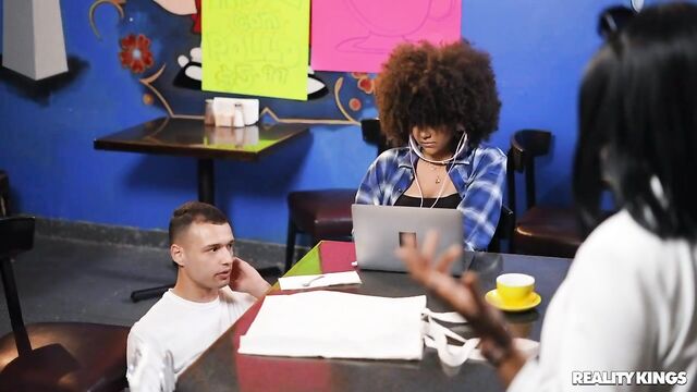Description:Hot and horny Nina Diaz is in desperate need of a quick release so she ducks into the coffee shop to take advantage of the free wifi. Nina sets up her laptop and headphones and logs into RK for a little afternoon delight. Nothing like a sneaky jerk-off session in full view of the barista Johnny The Kid and other patrons.Only thing that could make Nina’s pussy any wetter is if Johnny joined in!