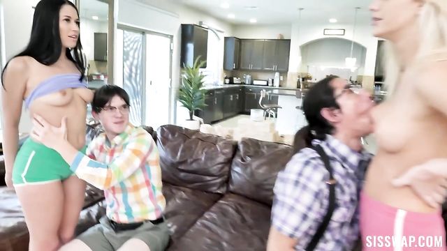 Description:Alex Coal and Kenna James have the geekiest stepbrothers David Lee and Tyler Cruise, who they often bully and tease. When Alex and Kenna realize they could use their stepbrothers’ genius minds to fix their grades in the system, they make a deal to swap them up and show them what sex with hot girls feels like!