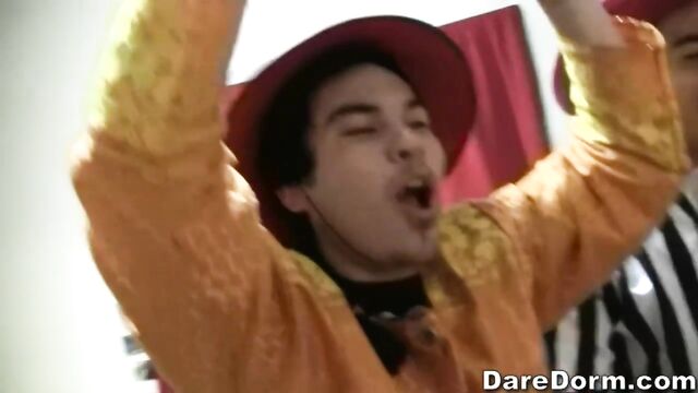 Description:Costume parties are always fun, but when a group of hot girls are in charge of throwing one, you know you are gonna see some crazy sexy costumes, and thats exactly what happen in this latest submission. Everything began with a group of hotties in their college bathroom getting ready for this amazing party, and talking about how much they love cock. Once back in the dorm, the party started and it did not slow down for one bit. We probably have the best virgin losing his virginity on camera ever. This kid nutted four, yes count it four times in this one night, and to one of the hottest chick in there. Yet another classic moment in daredorm history. Enjoy.