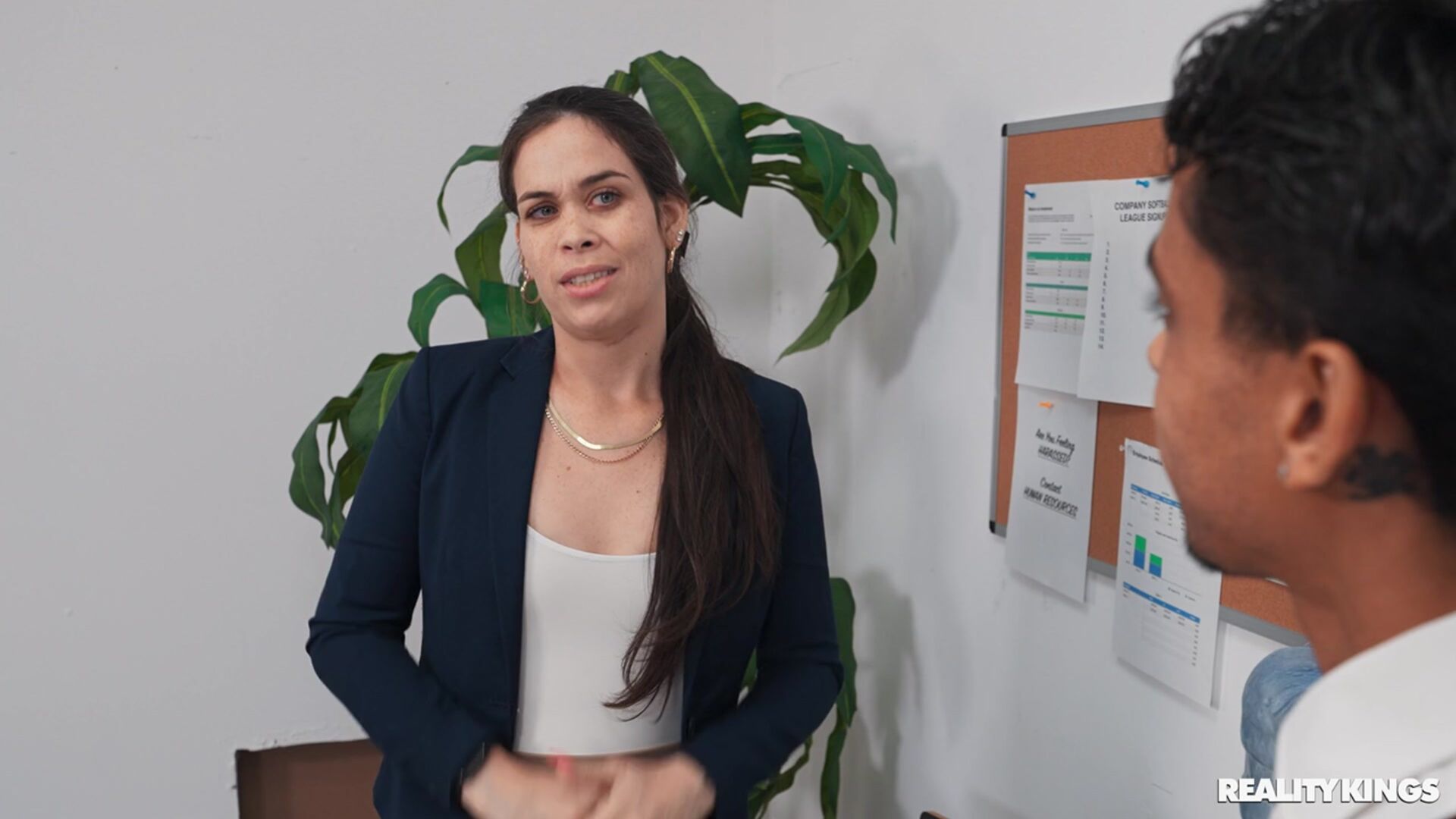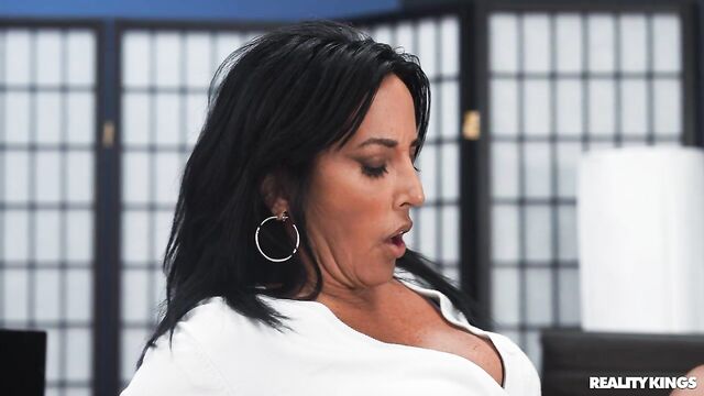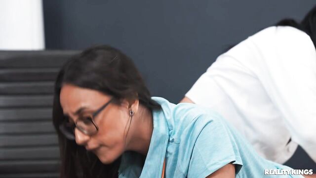Description:Busy MILF exec Abi James is on deadline, but her computer isn't working. When she catches new IT girl Lola Aiko sucking coworker Mike Ox in a closet, she breaks up the BJ and conscripts Lola into fixing her computer right away. She bends Lola over the desk and spanks her to teach her a lesson, then fingers the IT girl while Lola fingers the keyboard. The babes lick each other, and Abi has a surprise for her: a strap on! Lola says it's definitely better than the dick she was sucking, and after getting fucked, they trib and 69 on the boss's desk.