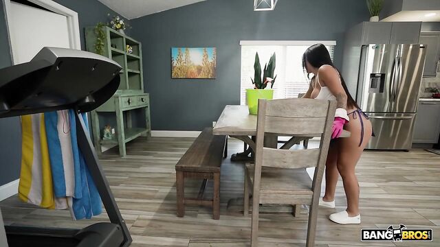 Description:We got a good one for you guys today. Alice Thunder is a hot latina chick trying to work as a maid for a little extra cash. We get her to come into Kaby's house and clean it up. We get a good look at her nice round tits, her long black hair, those big plump lips, and that big ol' booty. We get her to strip naked for us as she cleans and you can tell this chick takes care of her body. Just look at her curves, the way her ass sits when she bends over, and the way her skin shines when the sun casts light upon her. I won't even spoil the sex, you gotta watch it to believe it. If you fall in love with her by the end of this, I wouldn't blame you!