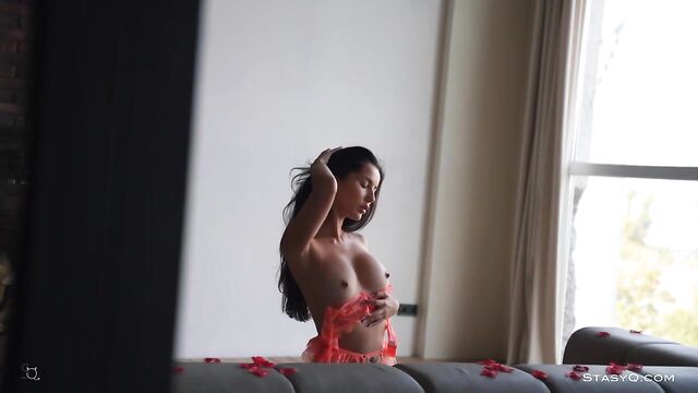 Description:Get ready to enjoy a mix of erotica, romantica, and ultimate sexiness. The StasyQ model posing in lacy lingerie is MarinaQ, one of the best adult models. She's in front of Said Energizer, flirting with his camera while rose petals cover her incredible curves. It all begins with a teasing game that elevates Video Release 635 to a whole new level. Orange lace hugs MarinaQ's hips, and a bra covers her pink nipples and big breasts. In a couple of minutes, she gets rid of the lace and leaves her body all naked, for your eyes only. Now, on a big bed, MarinaQ covers her divine body with rose petals. She is girly, playful, and sexy, and she enjoys your attention. While the soft flowers surround her, MarinaQ continues to explore her body, focusing on her round breasts first. While her dark hair touches her back, she continues to tease.