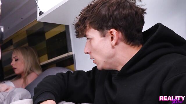 Description:Cecelia Taylor and her stepbrother Parker Ambrose are having a road trip in their camper van. When Parker goes for a walk, Cecelia makes a teasing sexual video for her boyfriend. Soon she's masturbating in her thong. Things are just starting to get good when Parker returns.Unwilling to stop, Cecelia hides under a blanket and keeps on fingering her clit. She doesn’t do a very good job of holding the moan, and Parker notices. Cecelia invites him to cum on over, and he does as he's told. Once Cecelia has enjoyed her stepbrother's hands on her hooha, she goes to work sucking him off.The van is pretty close confines but petite Cecelia still manages to ride her stepbrother's fuck stick. They go for it in spooning next, with Cecelia rubbing her clit. Getting to her feet, Cecelia Bends over the chair so Parker can dick her down from behind. Finally sated, she gets to her knees to suck her stepbrother off until he rewards her with a nice facial.
