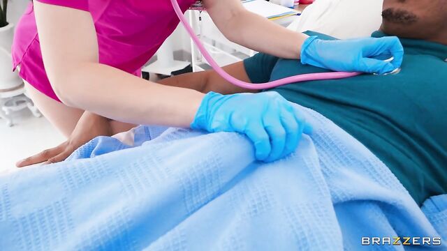Description:Ricky Johnson is a horny and over-active patient who can't keep his massive cock down during a routine physical — his nurse (Yhivi) is too sexy and has no limits! She's all business and accepts Ricky's raunchy advances (a finger in her pussy) and elevates them (stroking his cock in her gloves). She stays focused on her work, teasing Ricky throughout the process, hopping on his cock while she checks his chart. Ricky takes full advantage, eating her pussy before dicking her down, lifting her, and folding her into pervy positions on a shaky hospital bed. The appointment ends when Ricky unloads his cum into a sample cup, and Dr. No Limits tosses the gooey contents down her throat. "Send in the next one!" she says. All in a day's work!