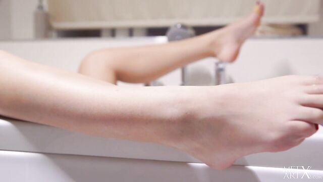 Description:Sexy blonde Casey is brushing her teeth when the vibrations of her electric toothbrush give her a naughty idea. Stripping naked, she runs it over her beautiful breasts, enjoying the way the buzzing sensation stimulates her nipples. She strokes her shaved pussy as pleasure courses through her gorgeous body, teasing her puffy clit and sliding a finger into her tight slot. The toothbrush barrel is the perfect size to fill her pussy, and she thrusts it in and fucks herself slowly, gasping with arousal. Lying in the bathtub, she drills herself deeper and harder, boobs jiggling with each stroke as she diddles herself to an orgasm.
