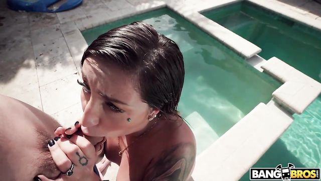 Description:Anna Chambers was showing off her beautiful body and cute ass. Tyler Steel showed up and started to play with her. He poured lots of oil on her young body. She gave him a nice blowjob. Then they fucked. First they started with doggy at the pool. Then she was riding him on the bench. Another BJ. Then some fucking while she was lying on her belly followed by some mish and a load in her face.