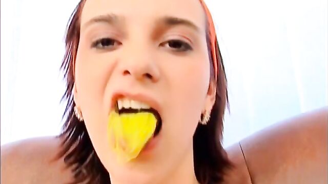 Description:Kitty is a cute brunette babe who loves riding gigantic dicks. Our guy fucked her tight juicy slit and unloaded his cum onto her innocent looking face. Check Kitty out right now!