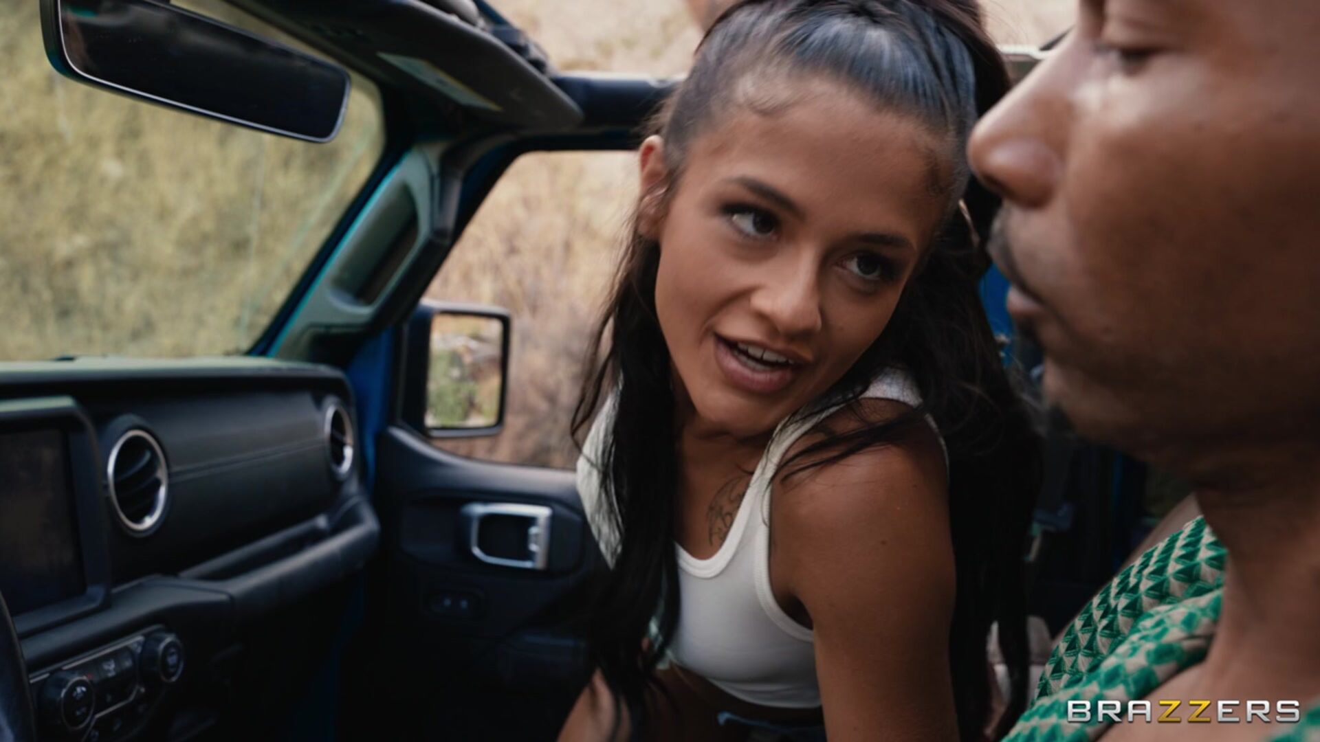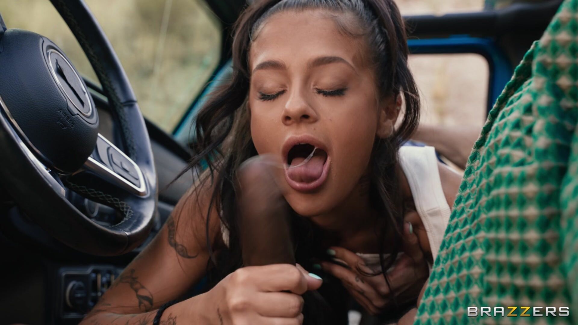 Description:Ryan Reid and her boyfriend Scotty P. are on the open road, and Ryan's trying to make things exciting and raunchy. When a poorly timed blowjob lands a sopping cum stain on her shirt, the couple head to a remote truck stop to clean up. While her distracted boyfriend waits in the car, Ryan steps inside, her spooge-speckled tits gleaming, much to the light of a lone, fat-cocked trucker (Alex Jones!) whose hog she immediately throats. Another trucker (Victor) steps in, and she maneuvers the proceedings into a free-use fuck-a-thon. The action eventually moves into his semi-truck, where he pounds Ryan Reid's pussy in uniquely perverted positions. After successfully coaxing every last glob of cum from Victor's cock, Ryan returns to the open road, no cleaner than before but freshly fucked and energized.