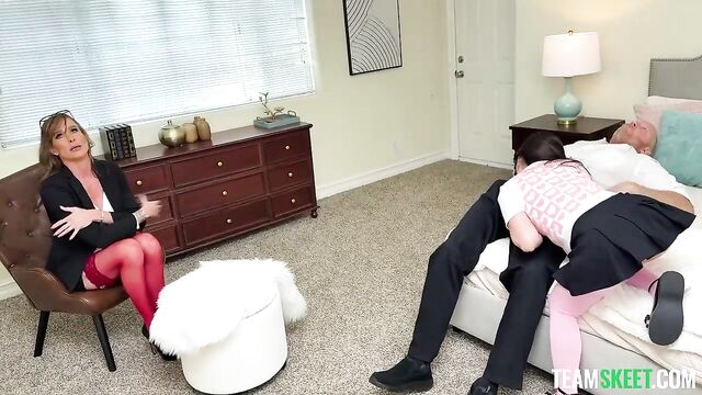 Description:Fuck my teacher! I never thought that would be a literal statement… But there I was, sucking her husband’s dick while she watched, knowing it wouldn’t be long before she joined. See, I’ve always had trouble with this teacher. She’s a huge bitch for no reason, always trying to get me in trouble or give me low grades. But I know something about her that would ruin her… I know she’s been fucking around with other students - the teacher’s pets, so to speak. Well, I decided I wasn’t going to put up with her anymore, and that’s when I knew seducing her husband was the sweetest justice. My perfect little perky Asian tits, my cute bubble butt, my eagerness to please and wrap my lips around the head of his penis - I knew he wouldn’t be able to resist. But I didn’t know it would be such a turn-on to get caught and have his wife watch us. Outside of school, Mrs. Marie was kind of hot… With her legs spread, her wet pussy - I needed her with us…