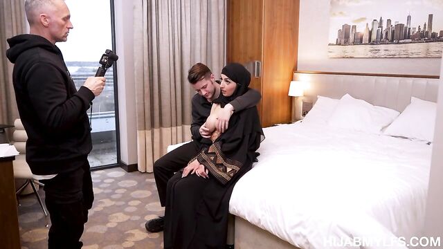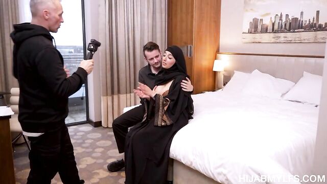 Description:Aaliyah's husband, a man consumed by a destructive gambling addiction, has fallen deep into debt. His reckless wagers led him to squander money he didn't have. His bad habits caught Marcus and Sam’s attention, a pair known for their ruthlessness in collecting debts. One fateful day, Marcus and Sam, driven by their determination to recoup their losses, arrived unannounced at Aaliyah's hotel room. Their eyes fell upon Aaliyah, a conservative hijab-wearing milf with a repressed and lustful desire. The thugs, captivated by Aaliyah's beauty and vulnerability, found their priorities twisting. The initial intent of collecting the debt faded as they realized they wouldn’t get any money from the scared lady. Yet, her frightful gaze gave the two men an idea. All they needed was a video camera and some sultry ideas to send Aaliyah’s husband the right message. Motivated by both fear and lust, Aaliyah decided to follow all of Sam and Marcus’ orders, in an attempt to protect her husband and experience things she’d never tried before.
