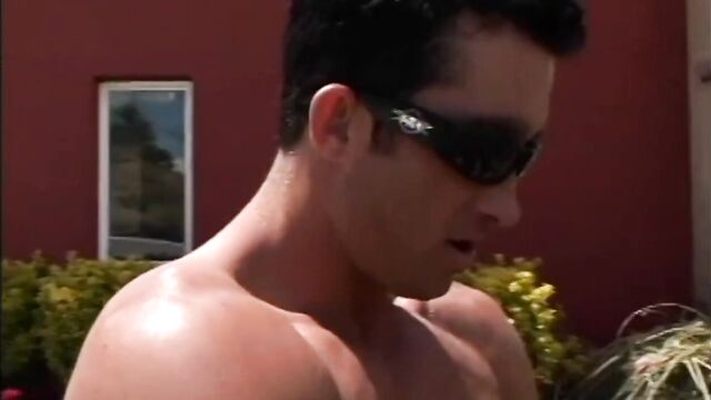 Bitch gets gang banged hard outside and gets her mouth filled with cum.