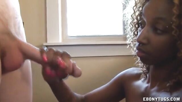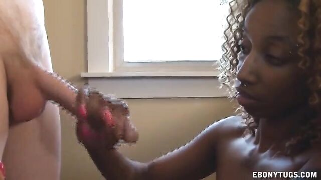 Female's stroking dick scene by Ebony Tugs