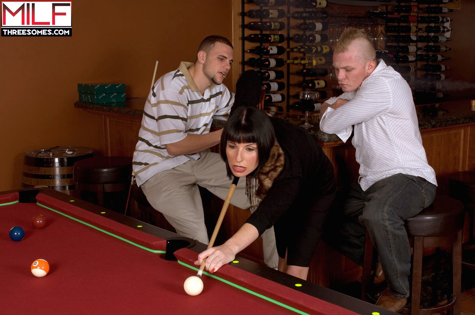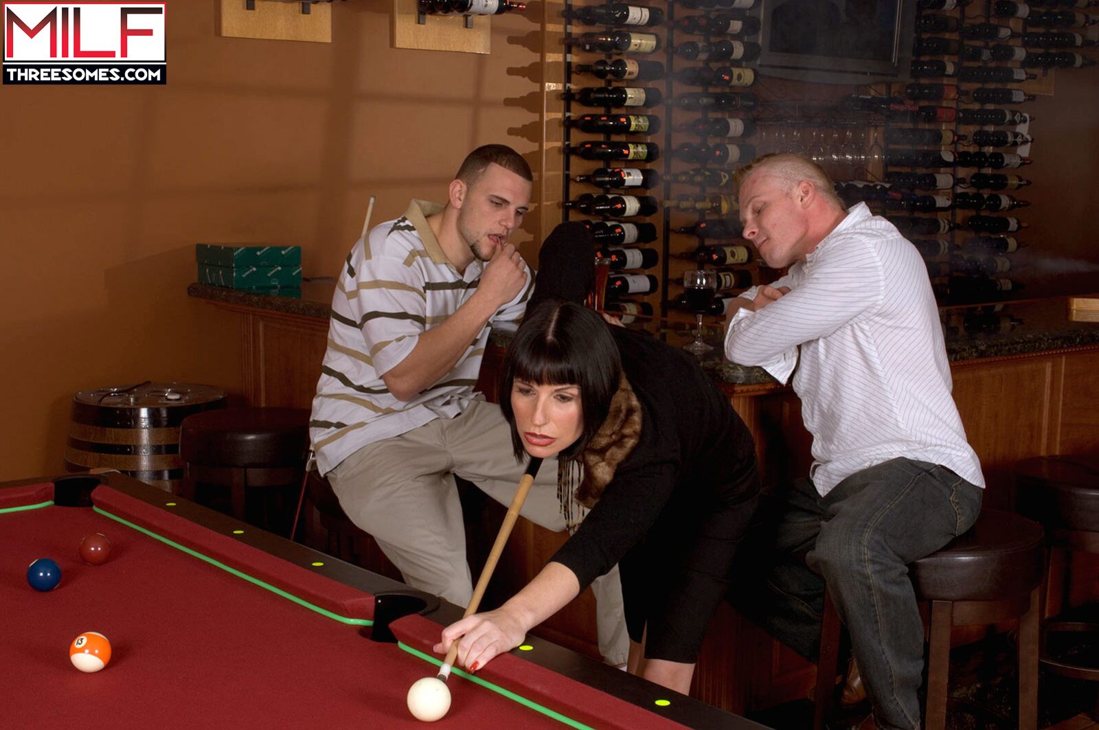 Description:Audrey, an exotic 40something with a husband and son at home, is out for a night on the town, showing off her sexy side. She's playing pool with a couple of young guys, and they think they can hustle her.