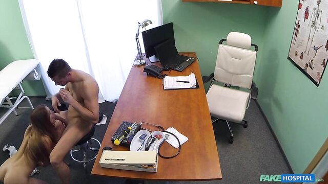 Description:Just my luck the technician who came in on short notice to fix the broken cameras in my clinic was such a handsome hunk. I simply could not take my eyes off his thick arms, or his broad back the whole time he reached up to repair the busted cameras. I decided to throw everything I had at seducing him, and stripped off my robe. When he finally finished and turned around and spotted me in my underwear, there was no doubt I wanted him to fuck me on my desk. But before I rode this hunk, I got right down on my knees and sucked on his fat cock to show him how grateful I was for the quality service!