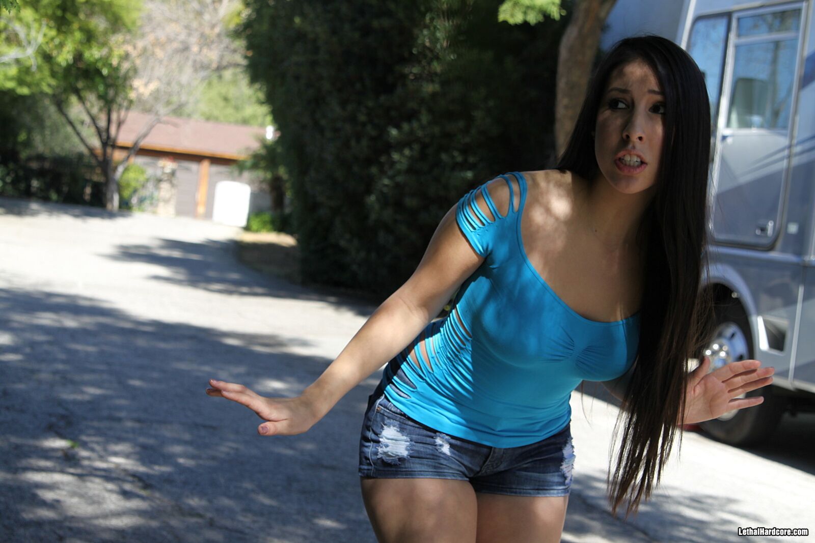 Description:Esperanza Diaz is waling out in the daylight all alone. Lee Stone then comes up and carries her back to his house. They both get naked on the couch and Esperanza Diaz spreads her legs wide open and lets Lee Stone eat her tight little pussy. Then Lee Stone fuckers her. After that Esperanza Diaz gets on her knees and sucks his cock for a little while before they get back to the fucking. She hops on top of him and bends over for him after that. Esperanza Diaz is such a slut that she went ahead and let Lee Stone fill her now loose pussy up with all of his cum.
