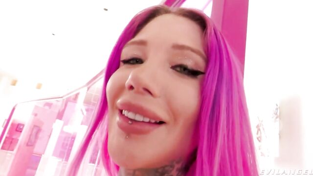 Description:Pink-haired, tattooed vixen Ava Stone shows off her bodacious body in an epic tease sequence, caressing her big boobs and wet pussy. She strips and spreads her sweet holes, spanking her plump booty when she bends over. Ava meets top XXX director-performer Mick Blue, boldly expressing her lust for the heavily hung stud. She spreads her legs and masturbates to prepare, talking dirty. Mick takes over; Ava drops to her knees and gives him a nasty blowjob, drooling and lapping his nut sack. She moans when Mick's big cock pumps into her snatch, begging the horny dude to fuck her harder. This rowdy fuck date features intense rod riding and passionate poon pounding. Mick glazes her with a messy cum facial. Satisfied, Ava stares into the camera tasting semen form her fingertips.