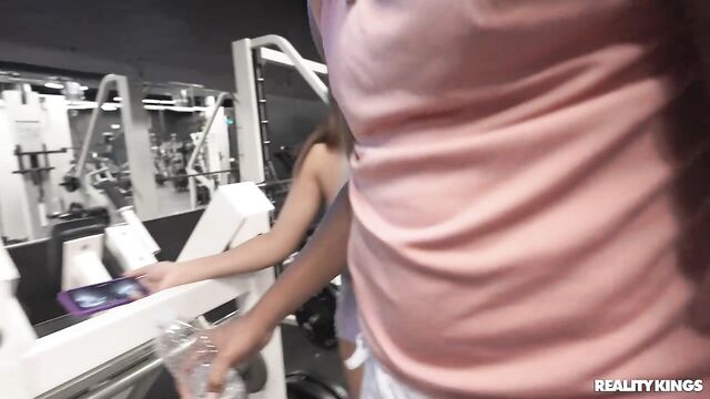 Description:It's closing time at the gym, and Kaby Snow and Funsized Megan are the only people left. Megan asks for 15 more minutes to take her selfies and videos, and Kaby joins her to pose while the employee holds the camera. As he leaves to lock the doors, he comes back to find Kaby eating her pussy! Megan likes to be filmed, so the lucky employee captures it all as Megan sucks and tittyfucks Kaby's big cock and he works out her pussy!