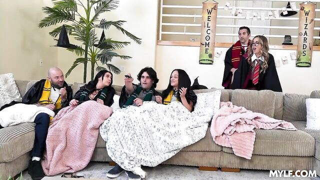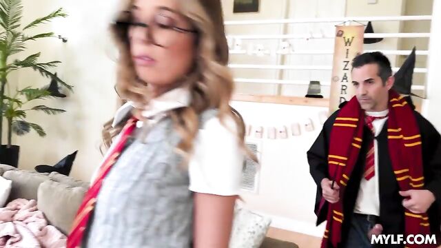 Description:Millie had built a life on the foundation of "no." It was her default response, but one day, while checking some ads, she stopped one that caught her attention: “Yes! Is the Truth.” Captivated, she realized she was missing out on everything. Determined to change her life completely, she started saying yes to everything: gleeful spills on snowy ski slopes, confident leans into motorcycle turns, and the infectious laughter of a Harry Potter-themed costume party with a watch party of the complete series included. In this last event, she met Donnie, a handsome friend of her friends who loved to add some extra spice to these watch parties. When everyone’s attention was fixed on the young wizard’s adventures on TV, Donnie made Millie a bold proposition: would she like to play with his meaty wand? Now a yes woman, Millie did not doubt it for a sec. Without anyone noticing, Millie allowed Donnie to cast a creamy spell inside her mouth.