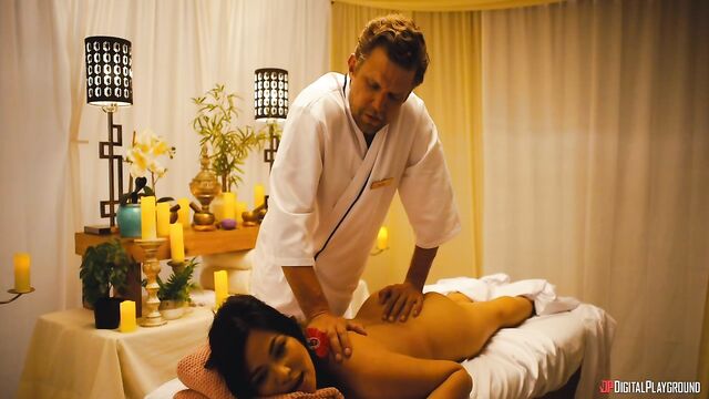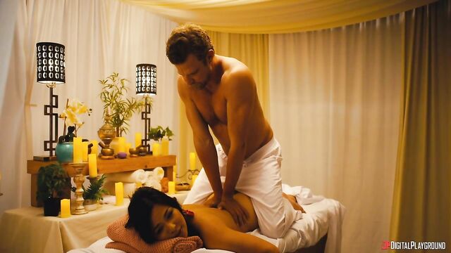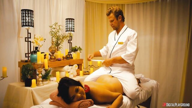 Description:Jess (Scarlett Alexis) hoped that Paradise Pleasures, the sexiest resort on Earth, might save her relationship with her boyfriend Andy, but from the first minute they get there, all he does is sulk and complain... except when gorgeous manager Mia (Texas Patti) gives them some very special attention at the check-in desk. At dinner, Andy pretends to propose as a joke in front of all the guests, and, livid, Jess storms off. While she calms down at the fountain, hunky masseur Sven (Vince Karter) offers her a rubdown to make her feel better, and the sensual touching soon turns sexual as Sven's hard cock appears in front of her lips. Jess sucks him and squirts as he fingers her pussy, and she feels much better after an athletic fuck! Maybe this vacation isn't ruined after all...
