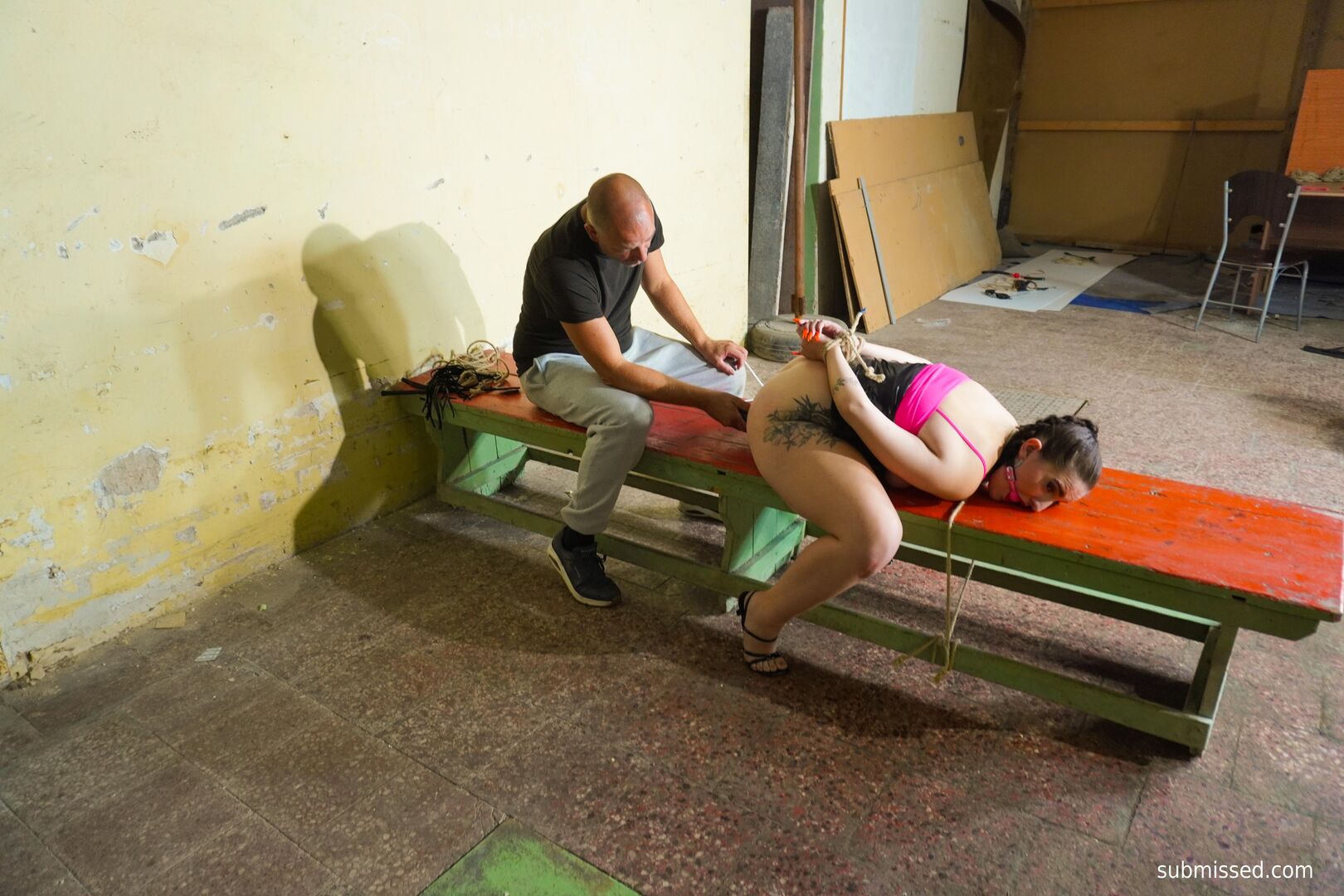 Description:Submissed’s Stepsis Suzie Hogtied and Gagged is a raunchy BDSM thrill. Curvy brunette Stepsis Suzie, with natural tits and tattoos, teases in high heels, her shaved pussy peeking in an upskirt. Hogtied and gagged, she writhes as she’s whipped, her skin flushed. A magic wand buzzes her clit, forcing wild orgasms, while sex toys stretch her dripping hole. Her muffled moans echo under strict domination, her body quivering in submission. This filthy, raw flick is packed with sweaty BDSM heat, toy play, and curvy punishment that’ll leave you hard and craving more of Suzie’s kinky torment.