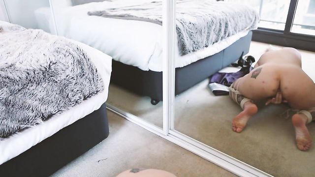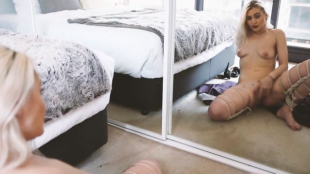 Description:Kinky Violet Devine, a sizzling-hot, heavily tattooed bleach blonde, demonstrates her boss-level rope bondage skills in this explicit fetish fantasy. We find her on a terrace, wearing an elegant black dress and strappy spike heels, when she receives a message from her Master, saying it’s time to let her hair down and she "knows what to do". Ever the obedient submissive, Violet takes off her heels and changes into a kimono. This is soon removed as she gazes into a large mirror, revealing her small, perky breasts and prominent stiff nipples. She unravels a braid of bondage rope and sets about binding her legs from thigh to ankle, Japanese shibari style, so they are bent double. This has the added effect of splaying them to expose her pussy – shaved with a landing strip on her mound. Then, as she rocks back on her ass and begins to masturbate, she flaunts her bare feet, toes pointed, and her fingers rub and probe her pink – her nails are pedicured and manicured to complement her vampish lipstick. She’s soon in the throes of pleasure, kneeling and moving within her self-imposed restrictions as she plows her snatch. On her knees, head bowed, her ass, bound legs and bare soles are reflected in the mirror as she nears orgasm, and her breath comes in short gasps and moans as she takes herself all the way. As she comes back down to earth, she grabs her ass for a soothing massage, then caresses her gorgeous body and flashes a smile as she relaxes...