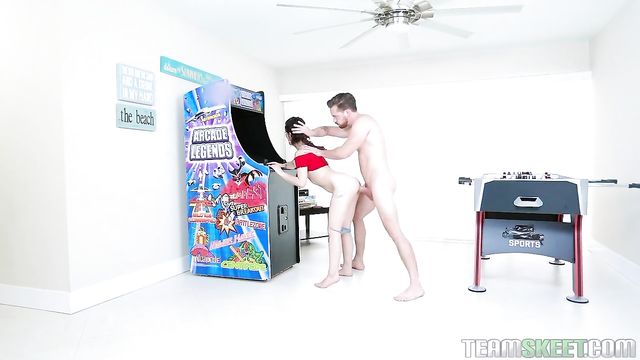 Description:Remember those old arcade games they had at pizza places in the mid 90s? Those were always a fun time, even if the buttons were always covered in pizza juice. Well, Coralee Summers still loves playing those old games. The only difference is she likes to cover the buttons in her pussy juice. Our stud is going to try to help her make that happen. He gets behind her while she is handling the sticks and rubs his hard cock against her bare ass. She gets wetter and wetter as he whips out his peen to launch a full on space invasion. He slides his Donkey Kong dick deep inside her Princess Peach and barrels his way to a new high score. Then, she lays on top of the machine and takes the dick like a true damsel in distress. Who knew video games could be so fun?