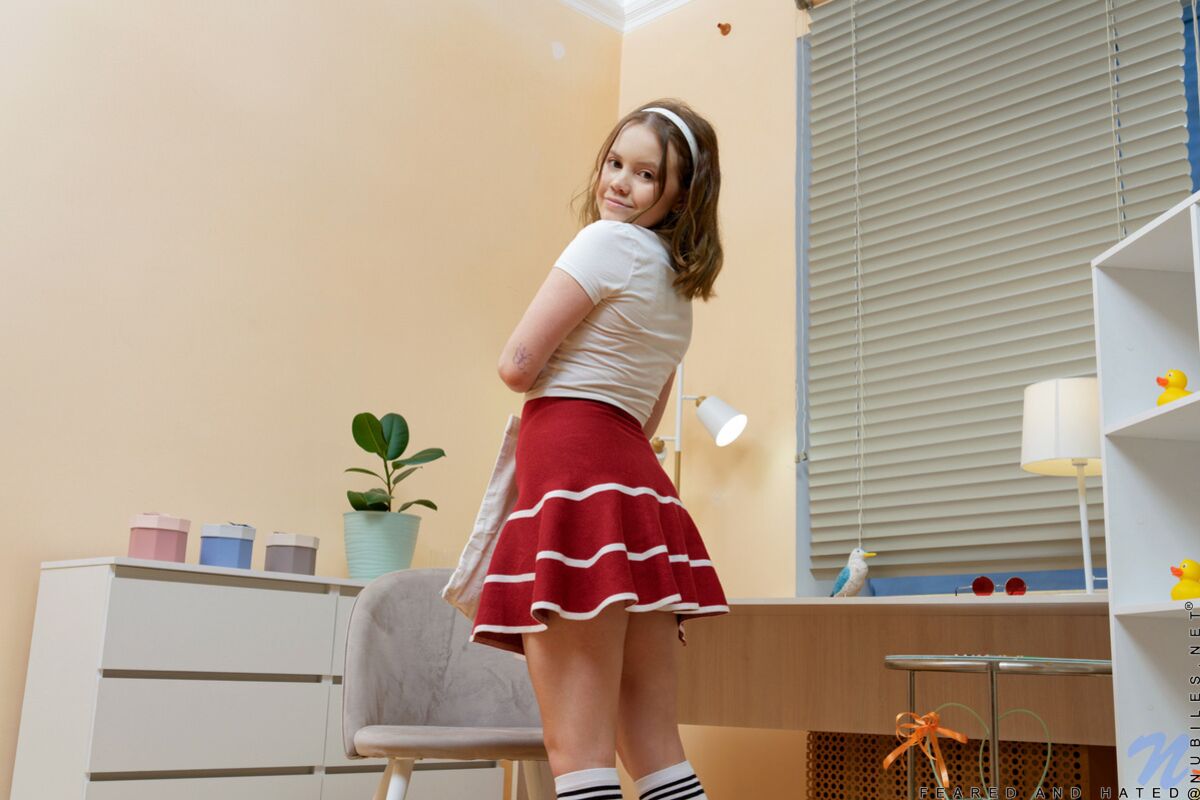 Description:We were so excited when Rebecca Nikson wanted to return to do another teen shoot for Nubiles. Just one look at her expression when she begins peeling her clothes off to show off her firm naturals in a sheer bra and then her thong beneath her miniskirt is more than enough to get us wanting her.