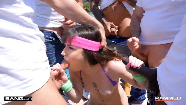 Description:Chanel Camryn is doing it all for you guys. This 90s themed showcase is wrapping up with an airtight gangbang as Chanel Camryn powers thought 5 massive cocks plugging her mouth, ass and pussy. She looks great in her neon leggings and pink socks, but those come off pretty fast and after sucking and fucking all those cocks, she gets her entire face plastered in cum.