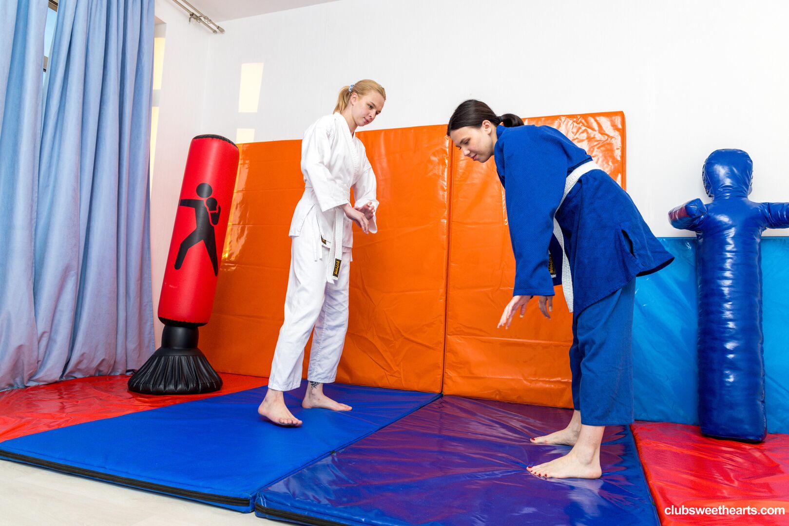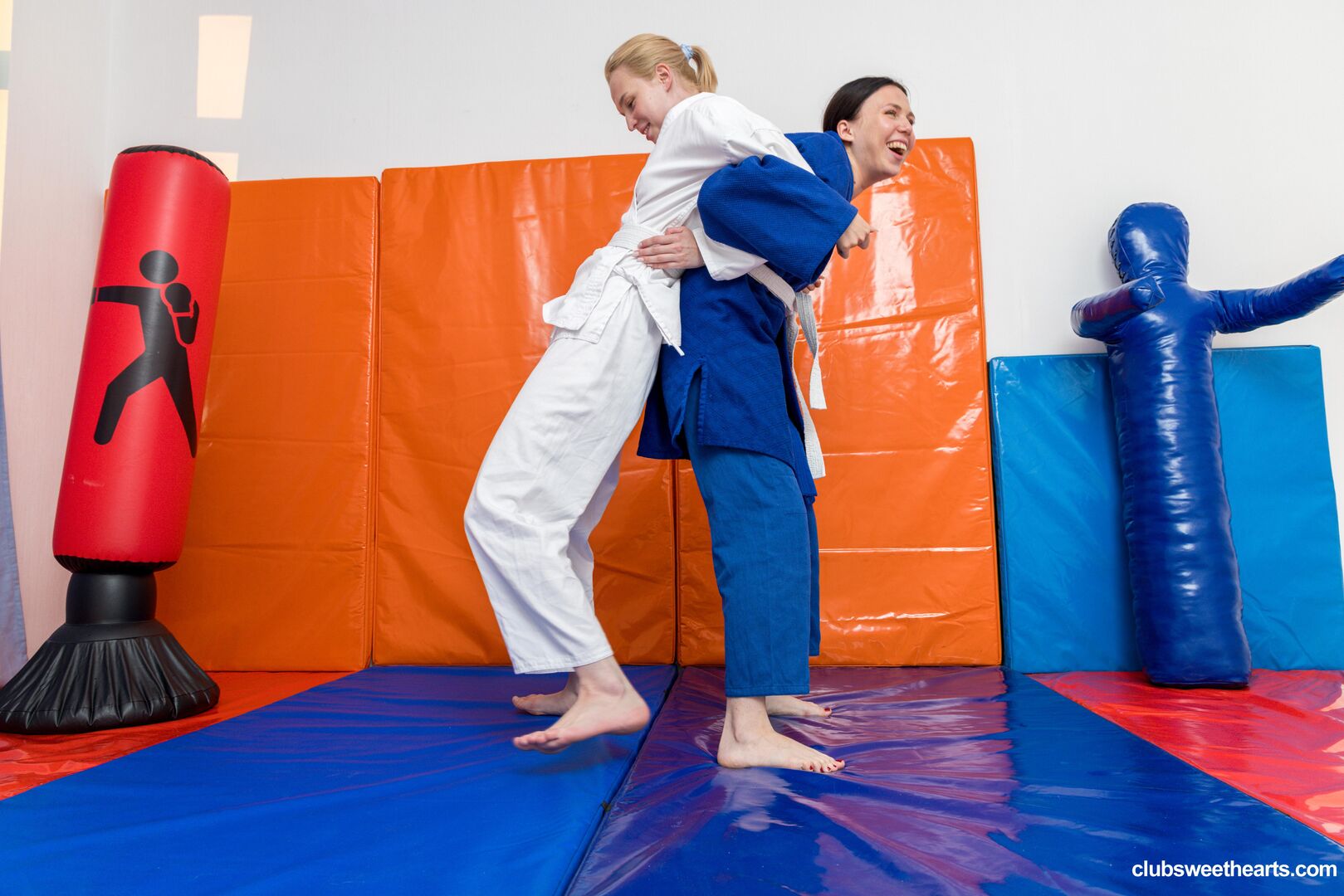 Description:In "Karate match with Elloise Arti and Katy Zachry" our sweethearts begin with a playful karate match, throwing kicks and trying to pin each other down. They laugh, tumble, and roll around until the fight turns into soft touches and hot kisses. Clothes come off, tits bounce free, and the blonde and brunette can’t resist going further. What started as a game ends with wet tongues, hungry hands, and two fighters cumming hard together.