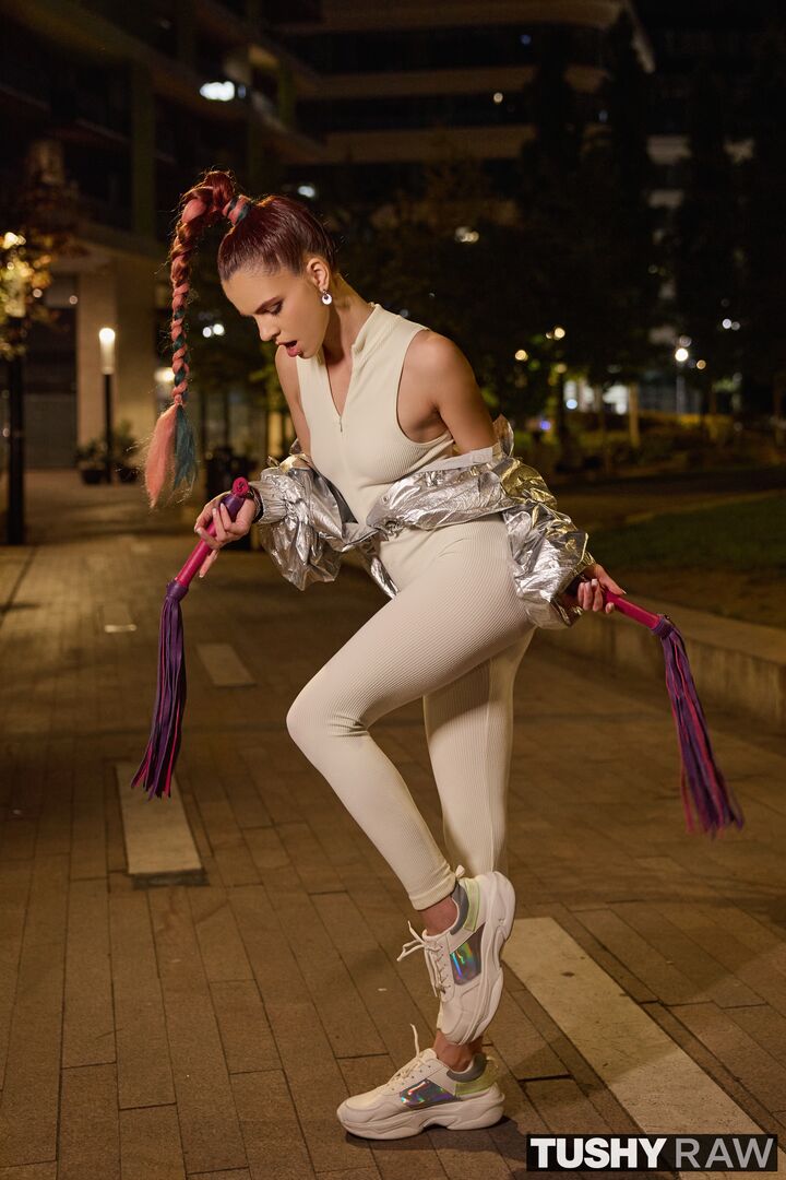 Description:The brightest light in the city tonight is Sirena, looking sexy and shining in silver. She's looking for a guy who can pull her strings and take a hold of her braid while driving deep into her tight ass.